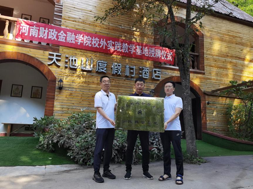 学院党总支副书记杨要杰、副院长曹阳、天池山度假村酒店总经理徐昊为校外实践教学基地揭牌