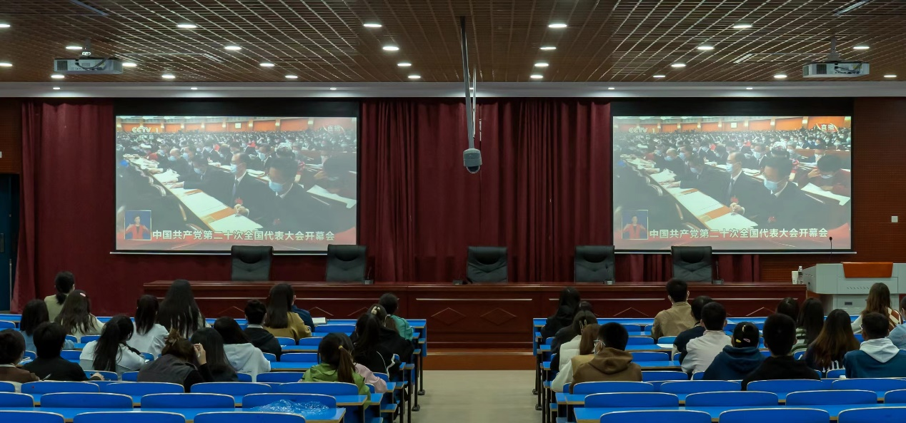 10月16日上午10点,中国共产党第二十次全国代表大会在北京隆重开幕。党委学工部、学生处、校团委等部门负责人与校团学骨干代表50余人在启智楼会议室集中收听收看了开幕会。其他团员青年分别在图书馆、教室、宿舍等场所通过网络、电视等多渠道收看开幕会盛况,认真聆听学习了习近平代表第十九届中央委员会所作的重要报告。开幕会结束后,广大团员青年欢欣鼓舞,倍感振奋,反响热烈。
