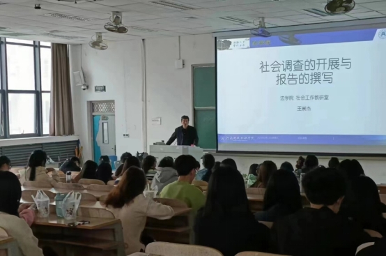 在讲座中,王崇杰简单介绍了社会调查报告的书写和注意事项。结合自身经验,详细分享了社会调研选题的方法、途径及原则,社会调研问卷的设计及统计,社会访谈对象的选择及访谈技巧,调研报告撰写方法。最后,他鼓励广大同学将要善于理论应用于实践,学以致用,在实践中发现问题,解决问题,将实践成果应用于“挑战杯”的项目中,与项目相融合,提高参赛作品的质量。王崇杰辅导报告事例生动、理论深入浅出,受到与会同学的热烈欢迎。